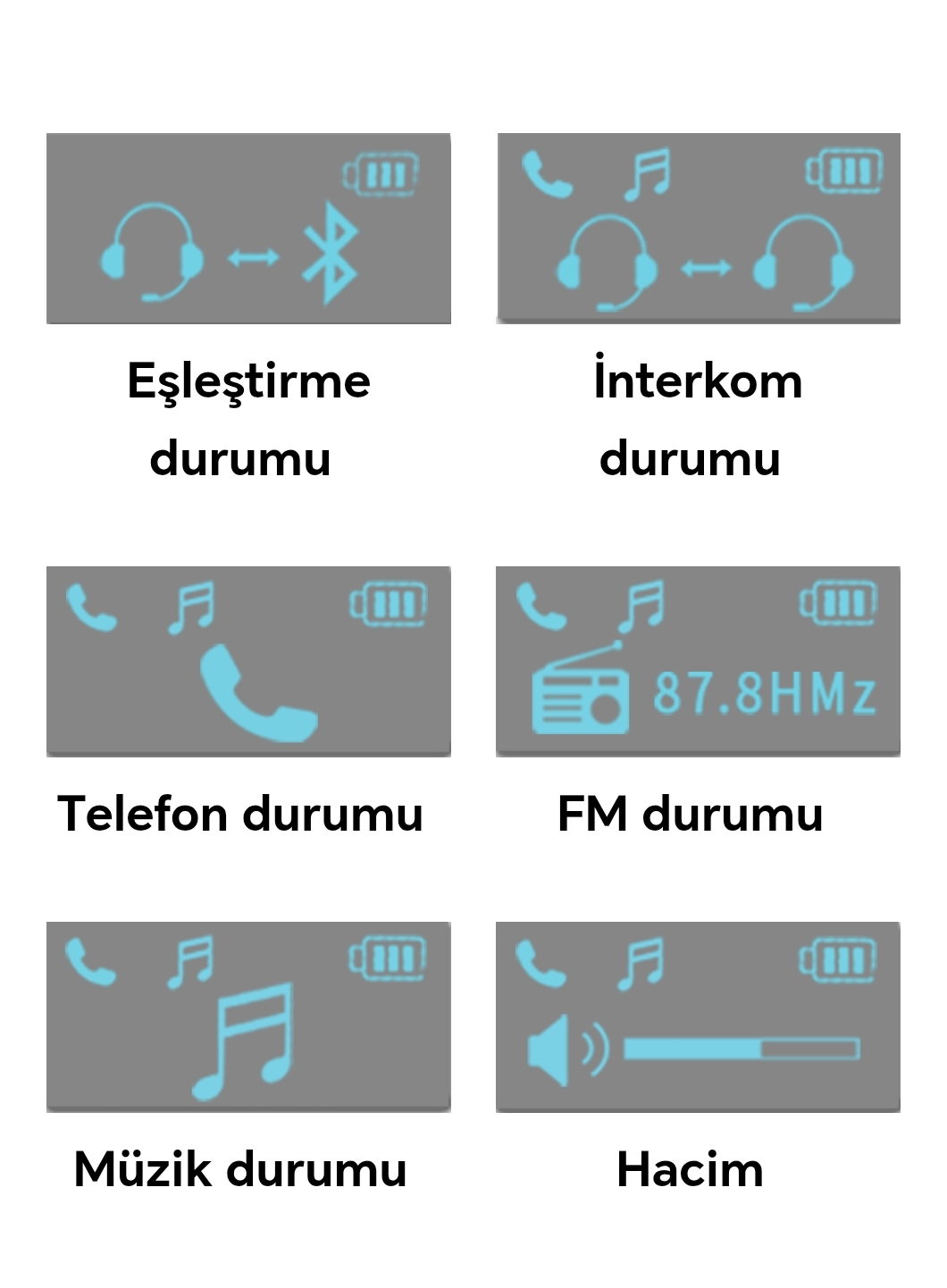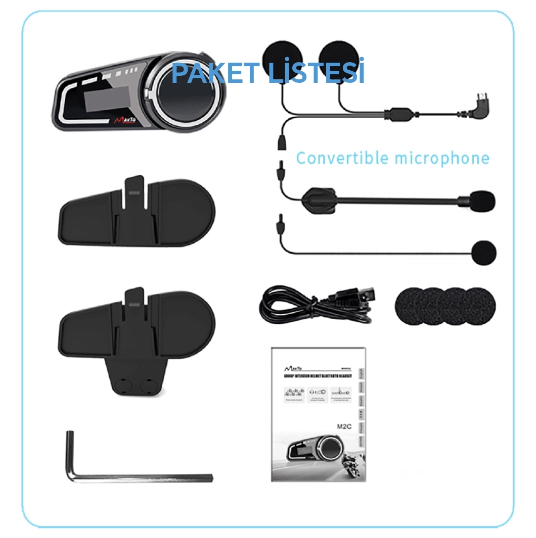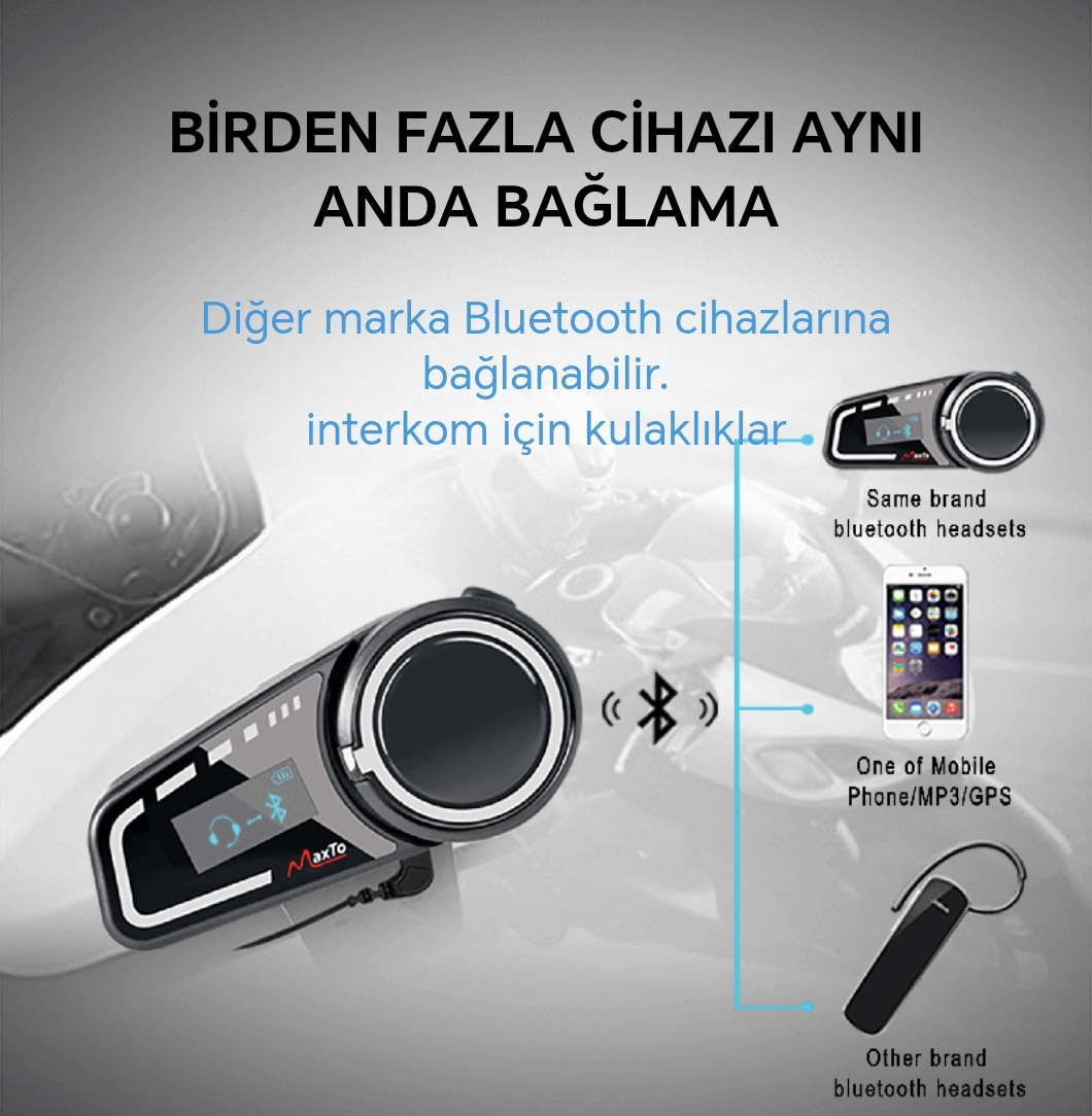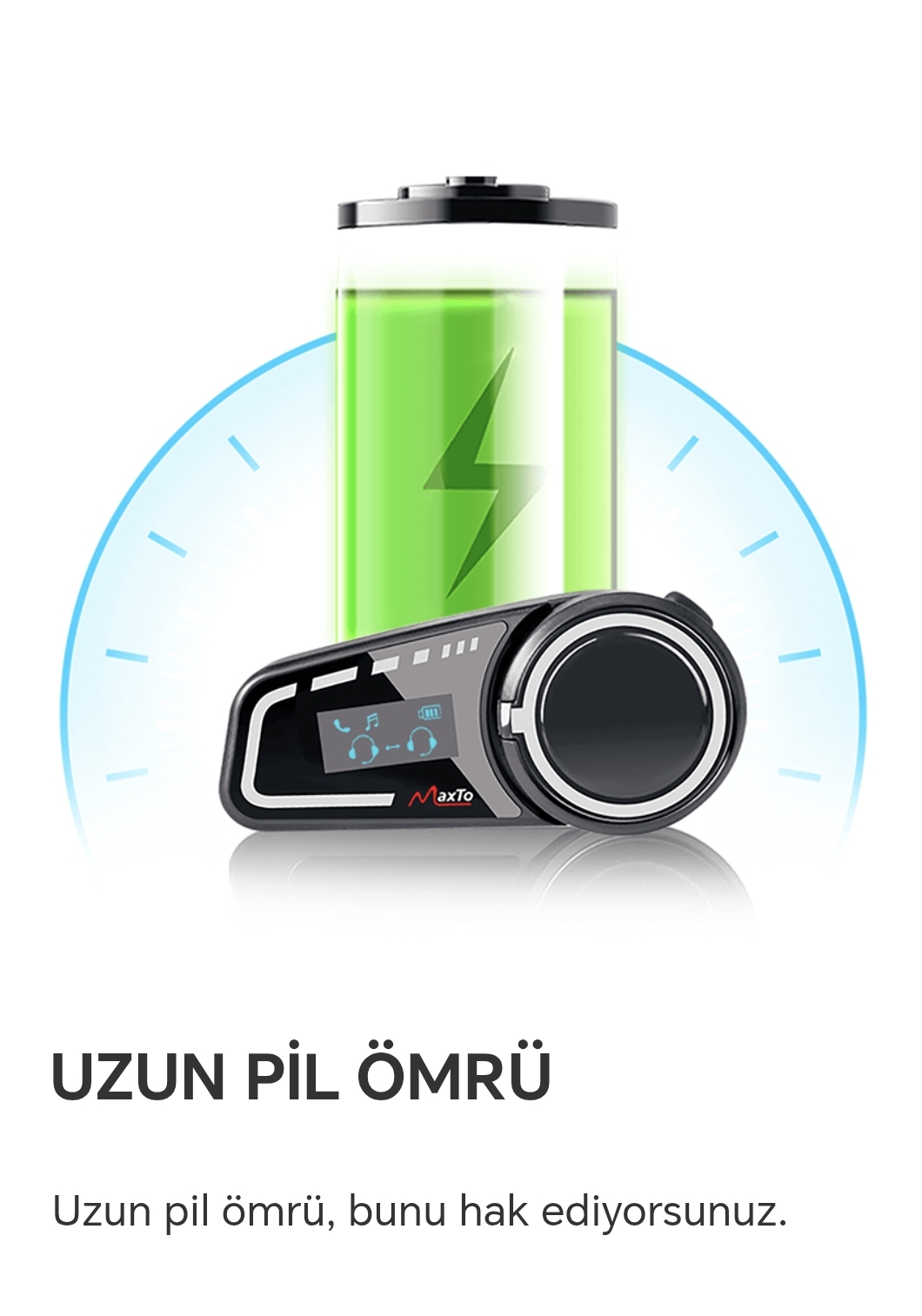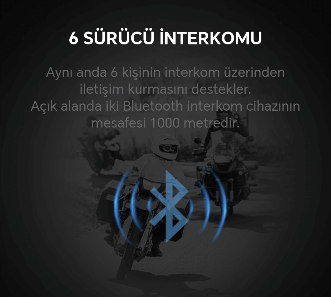 Filo iletişimi ( 6 Kişiye Kadar ) Diğer Bluetooth kulaklığa bağlanma Birden fazla cihazın aynı anda bağlanması 1000 metre çalışma menzili 2 cep telefonuna bağlanabilir A2DP stereo müzik Sesli Arama Sesli komut Şarj sırasında kullanılabilir FM Radyo Oynatma Kontrolü IP67 ve Yeni Nesil Type-C Şarj Gelişmiş gürültü kontrolü LCD EKRAN Bluetooth Bekleme süresi 200 Saat Bluetooth Konuşma ve FM Dinleme süresi 10 saat Türkçe Kullanma Kılavuzu (Türkçe Dil Desteği Çok Yakında ) 3 Yıl Garanti ve Servis yedek parça hizmeti